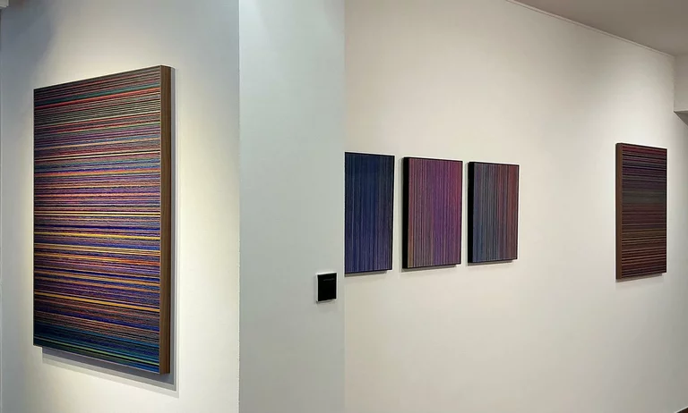 Noël Bache´s (*1994) creative process begins with traditional oil painting, where he explores the intricate relationships between colors. Through careful layering and blending, he establishes the essence of each piece. Once this foundation is laid, he transitions into the digital realm to refine and enhance gradients, unlocking the artwork’s full potential. The final transformation occurs when the artwork is printed onto brushed aluminum, a reflective material that interacts dynamically with its environment and the viewer’s perspective. The fusion of analog and digital methods, combined with the unique properties of aluminum, results in an eye-catching interplay of light and color.