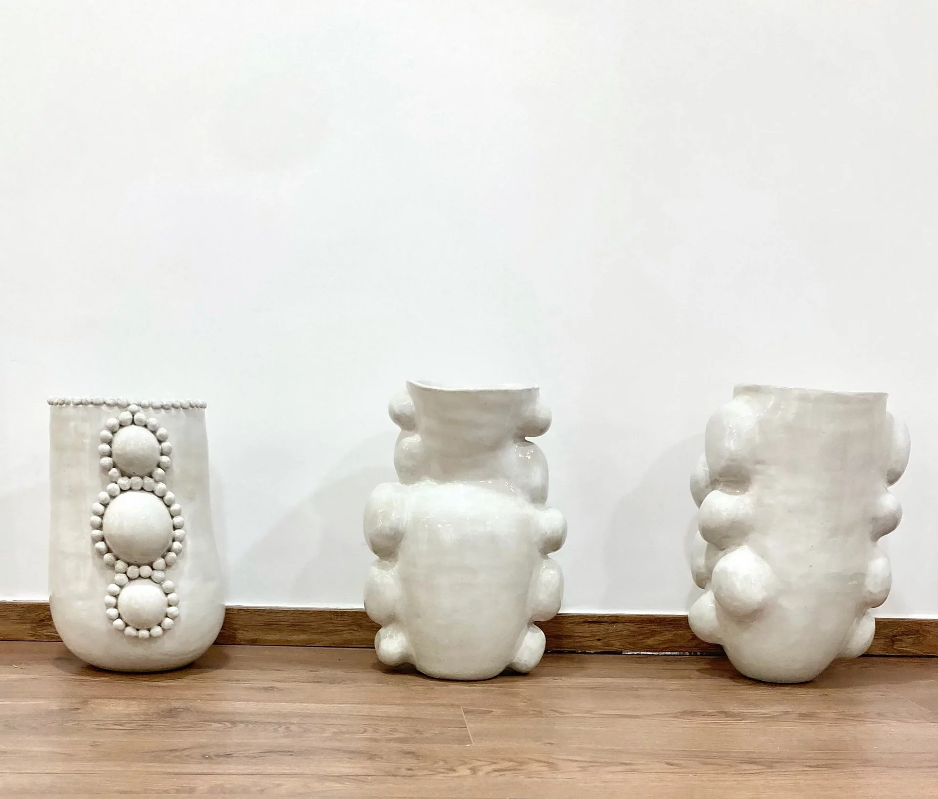 Mady Roef is a ceramist sculptor who lives and works in Breidweiler (L). Each individual piece that she creates, is a handmade, unique piece created through calmness and intuition. Her sculpting process involves a combination of beading technique, sometimes press molds and the potter's wheel. The final form of each sculpture is never predetermined, but emerges intuitively during the process, which results in dynamic and organic designs. The artist deliberately chooses a monochromatic colour scheme, as this is intended to focus on material and form.